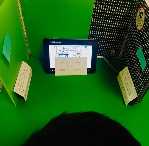 Prior to building our prototype, we conducted further research on trans/non-binary airport experiences, interviewing individuals who identified as trans/non-binary. Along the way, we were introduced to Sasha Costanza-Chock. In her competition-winning essay Design Justice, A.I., and Escape from Matrix of Domination, Sasha details one of her uncomfortable experiences of traveling as a non-binary trans femme individual. We were so moved by Sasha’s story that we decided (with her approval) to use her story as a framework to explore the trans non-binary airport experience.