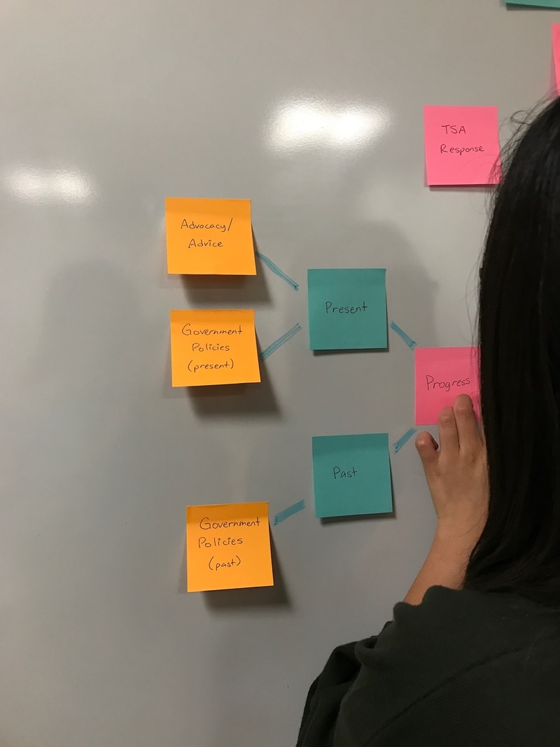 During this step, we also brainstormed the type of resources with which we wanted to fill our site. In order to help our target audience explore and understand our topic, we focused on contemporary information that provided greater context on the issue. We gathered websites and articles on millimeter wave scanning technology, statistics about transgender people in the U.S., official statements from the TSA, and the history of actions on this issue. In addition, we gathered a large number of personal stories as well as articles reporting on these individual experiences. Moreover, we found non-profit organizations that actively address this issue.